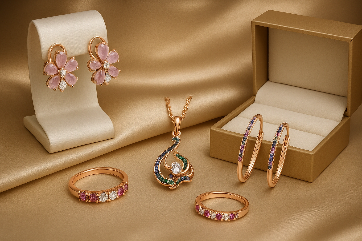 Vanilla flower sets 585 Rose Gold Earring Necklace Ring